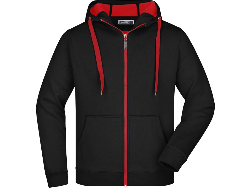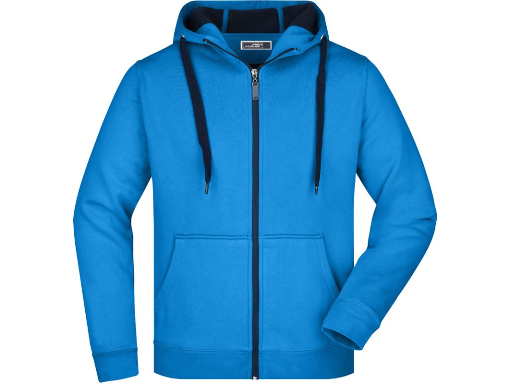 Kapucňou s ochranou brady, vsadené rukávy, elastické manžety na rukávoch a spodnom leme, klokania kapsa, ploché švy, šnúrka, zips a vnútrna strana v kontrastnej farbe