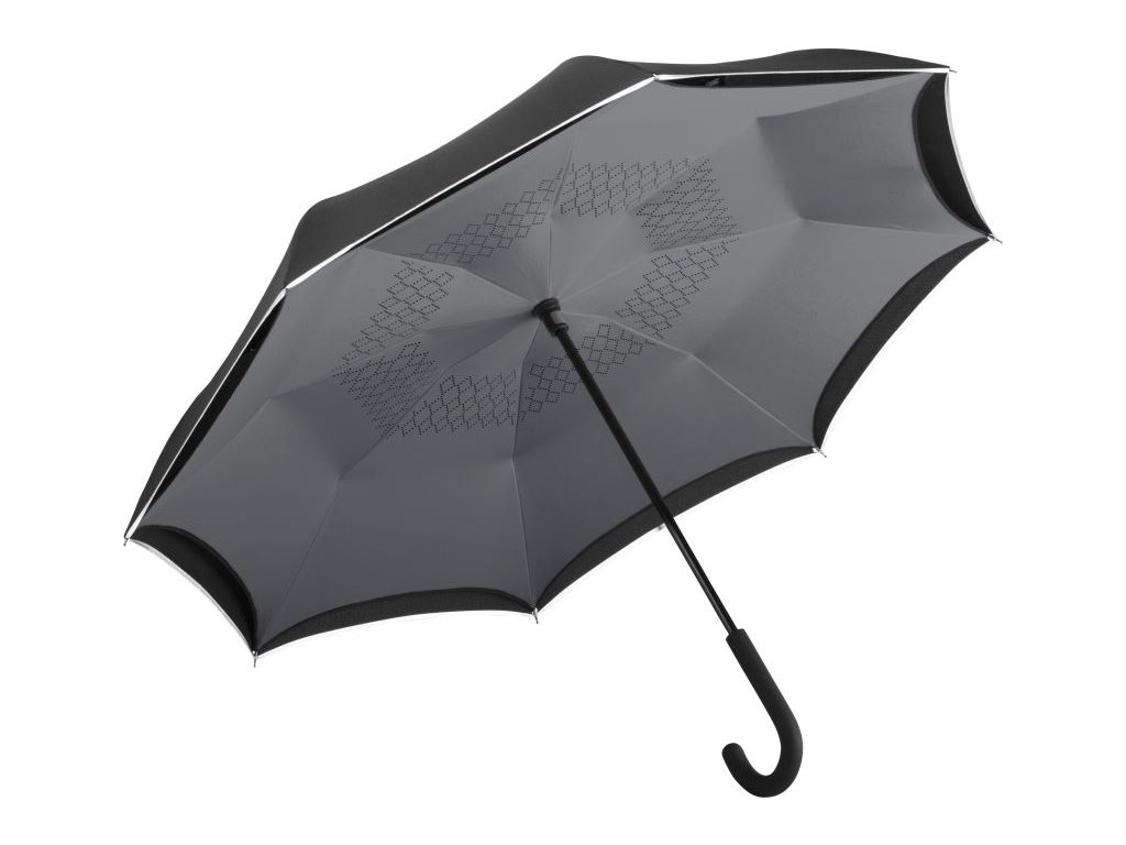12mm černá tyč z pozinkované oceli, černá Soft-Touch kulatá háková rukojeť s možností umístění reklamy, laminátové kolejnice, pojistka s integrovaným tlačítkem na otevírání, ruční otevírání, černé niklové špičky, obrácený otevírací a zavírací mechanismus (mokrá strana při zavření uvnitř), větruodolný systém, vnější povlak se stříbrným reflexním lemováním (bez ochranné funkce), 60cm/8 dílů, průměr: 109cm, uzavřený má délku: cca 78cm