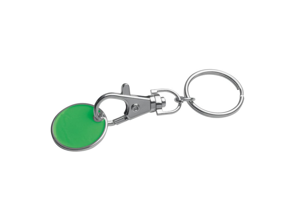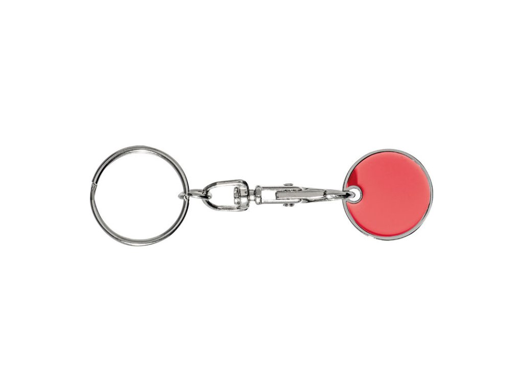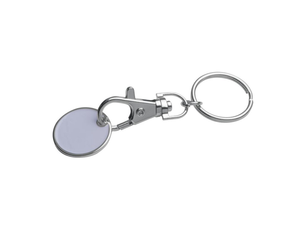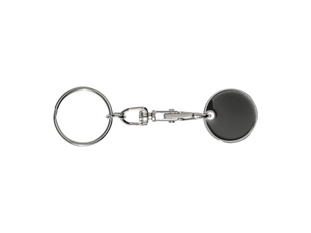 Kľúčenka s karabínkou a s odnímateľným žetónom na nákupné vozíky. Mince sú z jednej strany ploché a ponúkajú ideálne miesto pre Vaše logo.