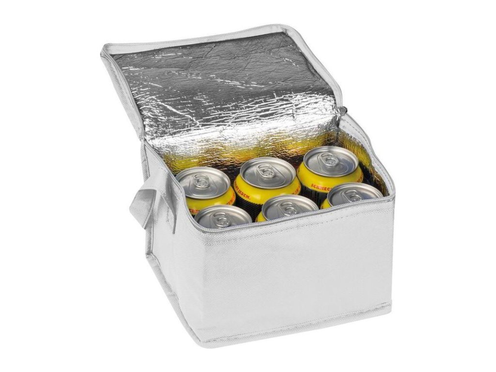 Non-woven chladiaca taška vhodná pre 6 nápojových plechoviek (0,33 litrových), vybavená s ramenným popruhom pre pohodlné nosenie.