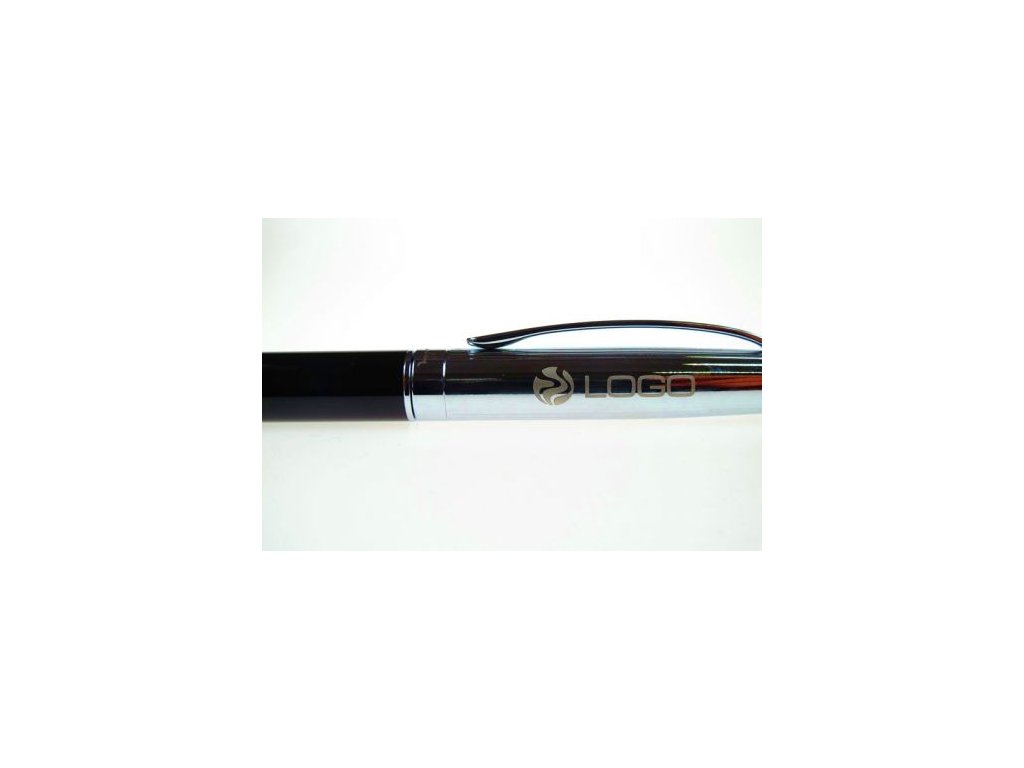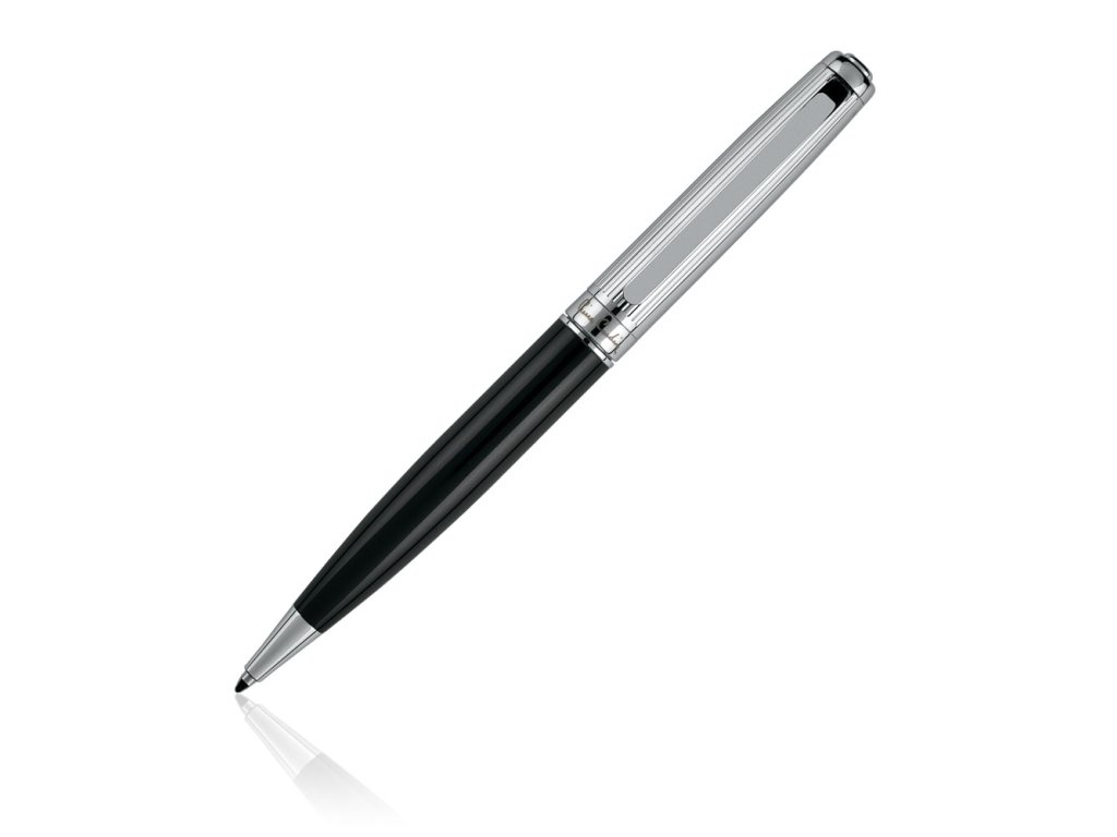 Guľôčkové pero má chrómovanú časť a čierne lakované valce,