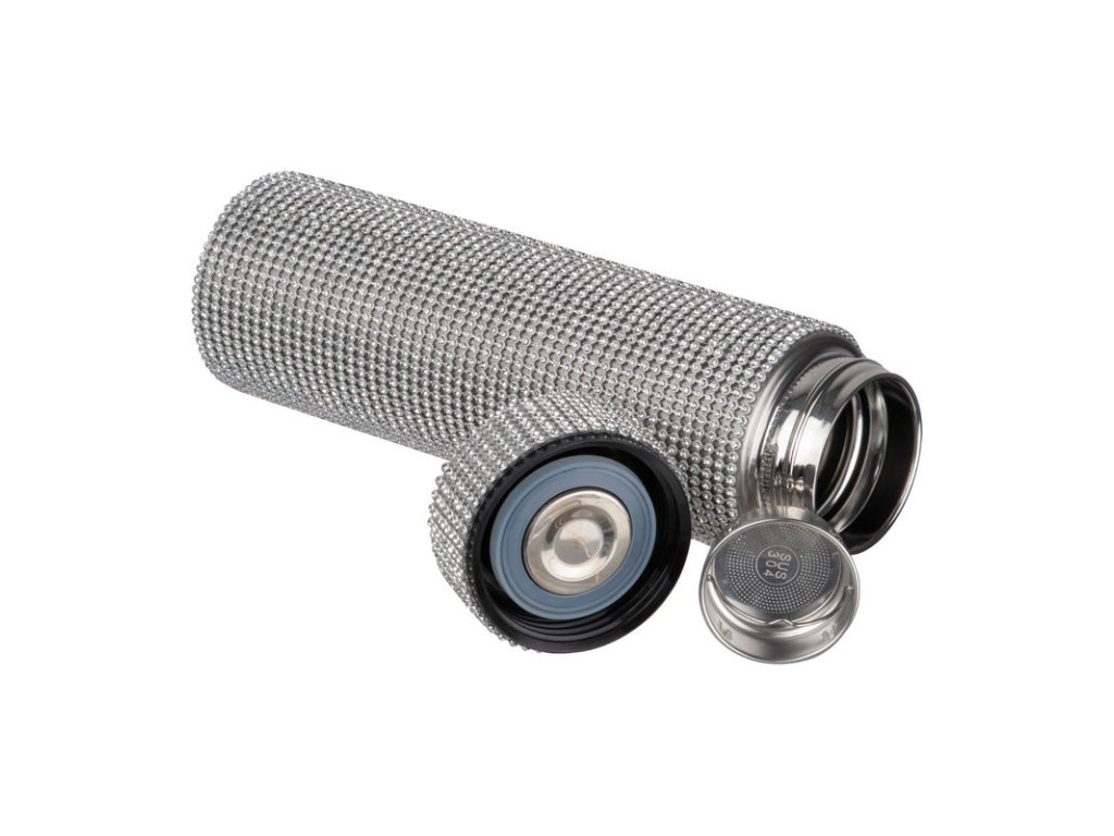Veľká nerezová fľaša trblietavými kamienkami,500ml