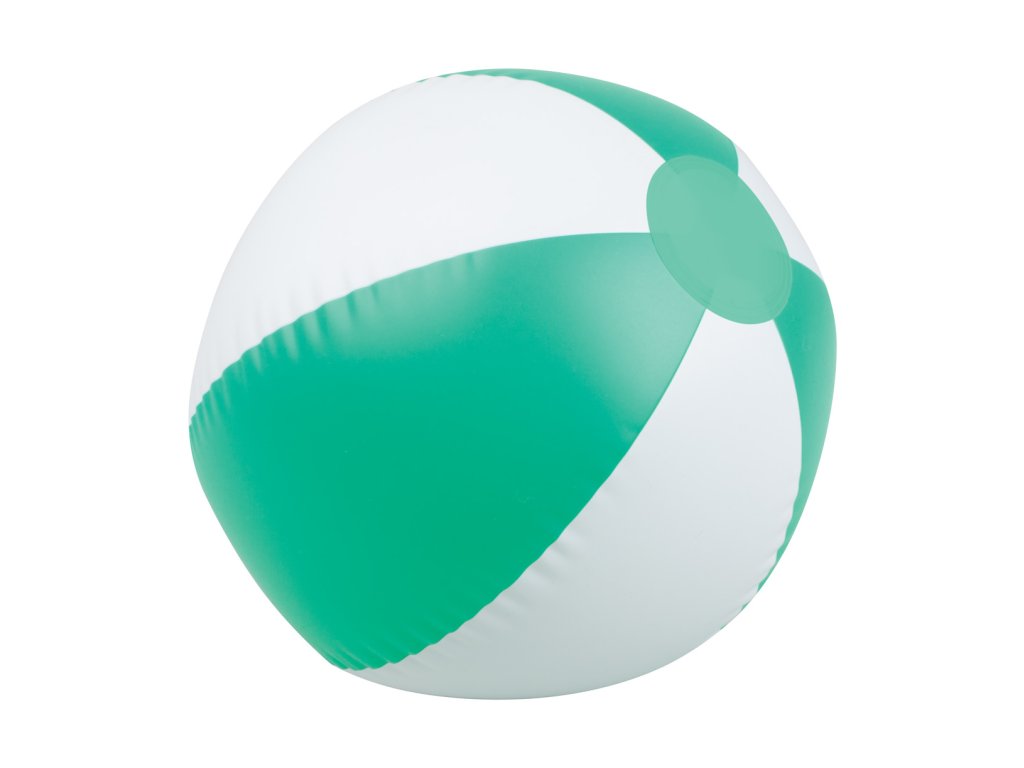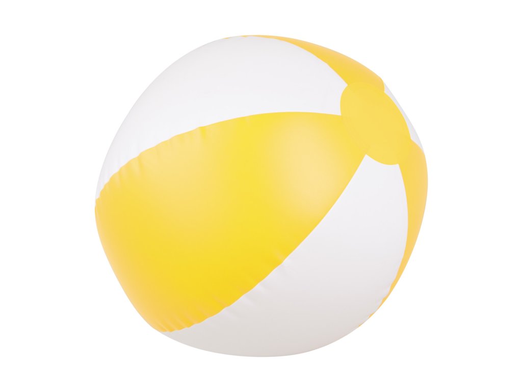 6-panelová nafukovacia PVC lopta s bielymi a farebnými dielmi. Dĺžka nenafúknutej lopty: 320 mm.