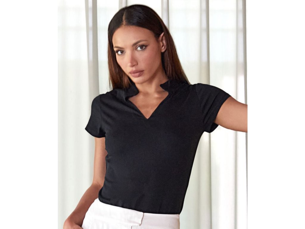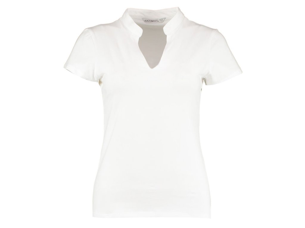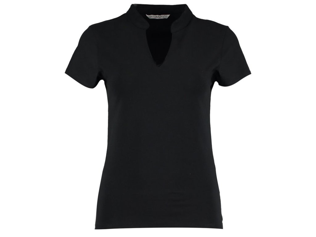 Klasický strih, lemovaný výstrih do V, mandarínkový golier, zosilnené ramenné švy, dvojité švy na rukávoch a leme, pranie na 40°, nevhodné do sušičky