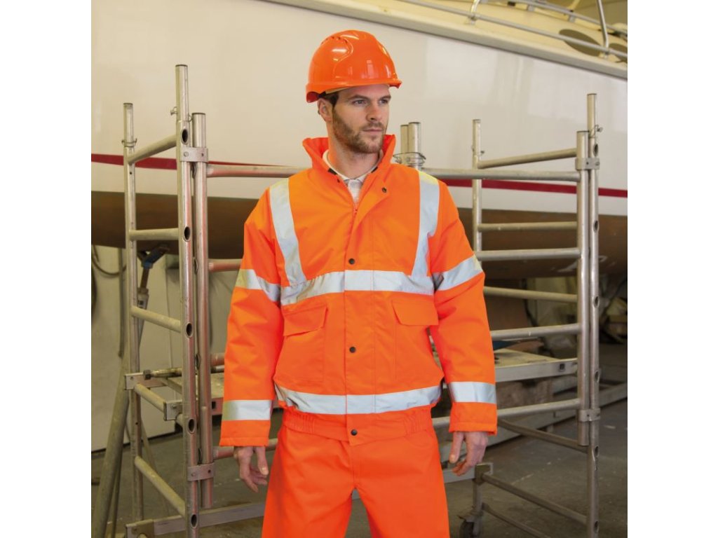 Nepremokavá, vodný stĺpec 1 000 mm, skrytá kapucňa v golieri, elastický lem, chlopňa na zips, 2 vonkajšie vrecká, 1 vnútorné vrecko, podlepené švy, prístup pre ozdoby na leme, pevná a odolná, vetruodolná, certifikovaná podľa EN ISO 20471:2013, trieda 3, podľa normy EN343: 2019 trieda 3, 50 mm široké všité bezpečnostné pásky, pranie na 40°, nežehliť, nevhodné na sušenie v sušičke. Veľkosti: S – M – L – XL – XXL – 3XL – 4XL