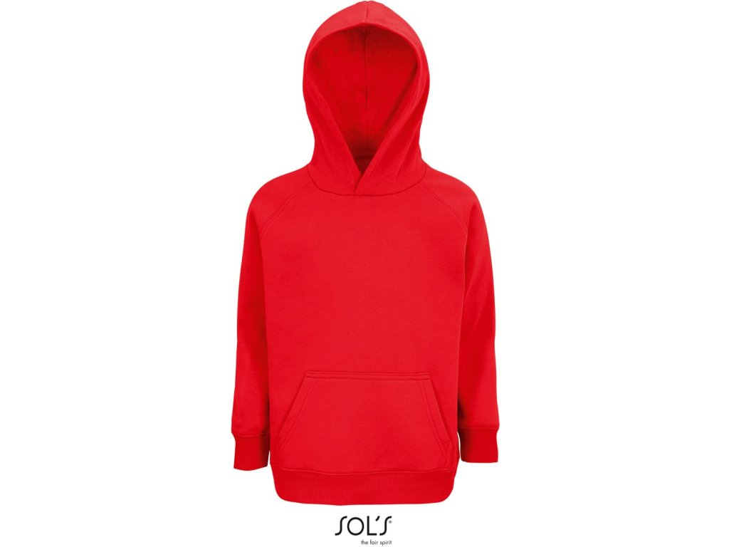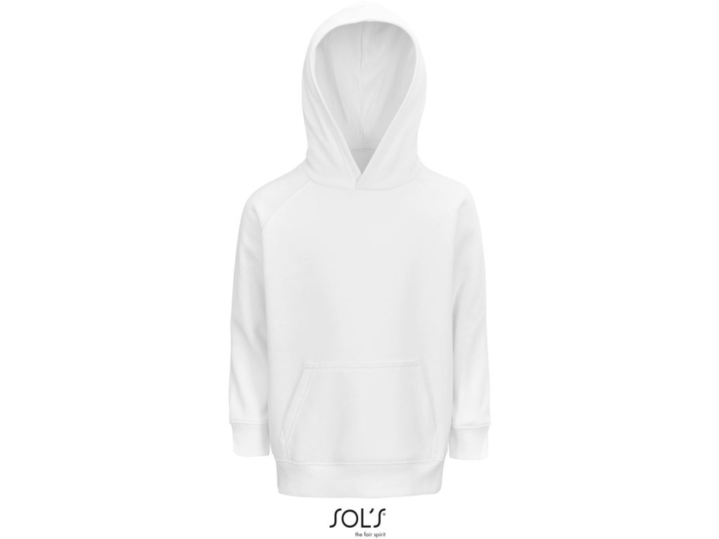 Rovný strih, kapucňa s podšívkou z jednoduchého džerseja, polmesiac na výstrihu, páska okolo výstrihu, raglánové rukávy, rebrovaný úplet 2x2 na golieri, rukávoch a leme, klokanie vrecko, 3-vláknová tkanina odolná voči teplu, česaná vnútorná strana, štítok TearAway, neutrálny štítok s veľkosťou, prať na 40°, nevhodné do sušičky. Veľkosti: 4 roky – 6 rokov – 8 rokov – 10 rokov – 12 rokov