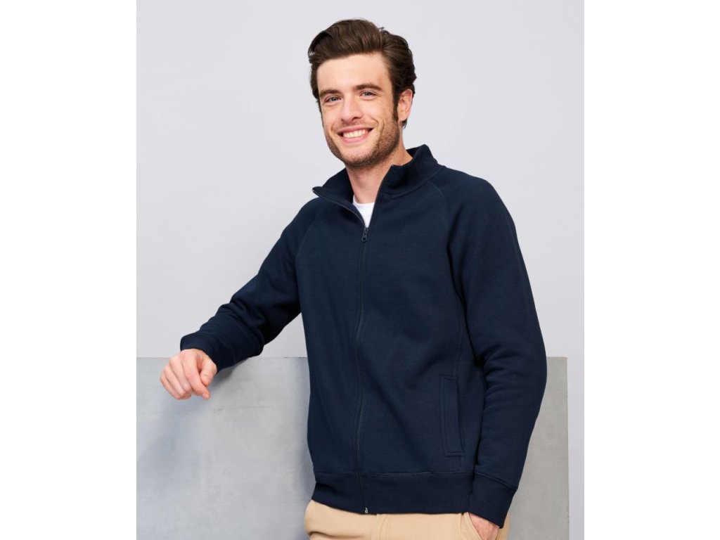 Stojatý golier, raglánové rukávy, 2x2 rebrované manžety s elastanom na krku, rukávoch a leme, česaná vnútorná strana, prateľné na 60°, nevhodné na sušenie v sušičke Veľkosti: S – M – L – XL – XXL