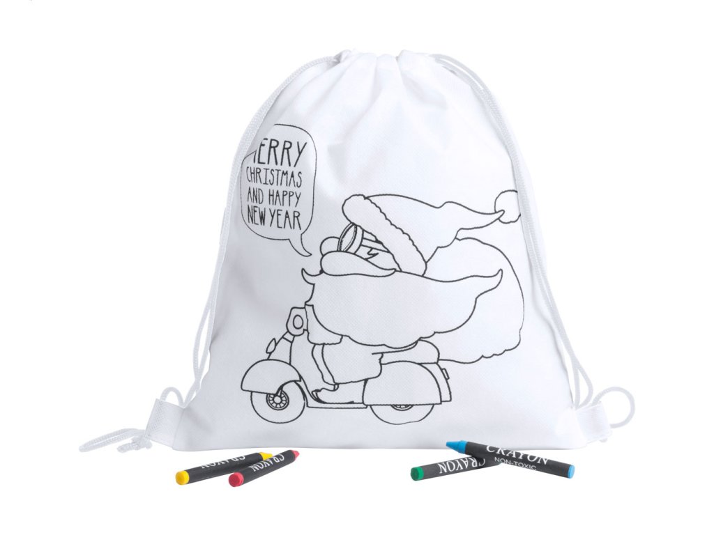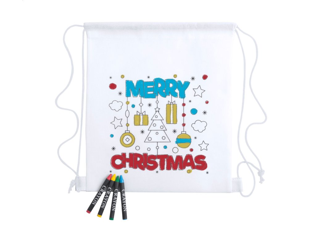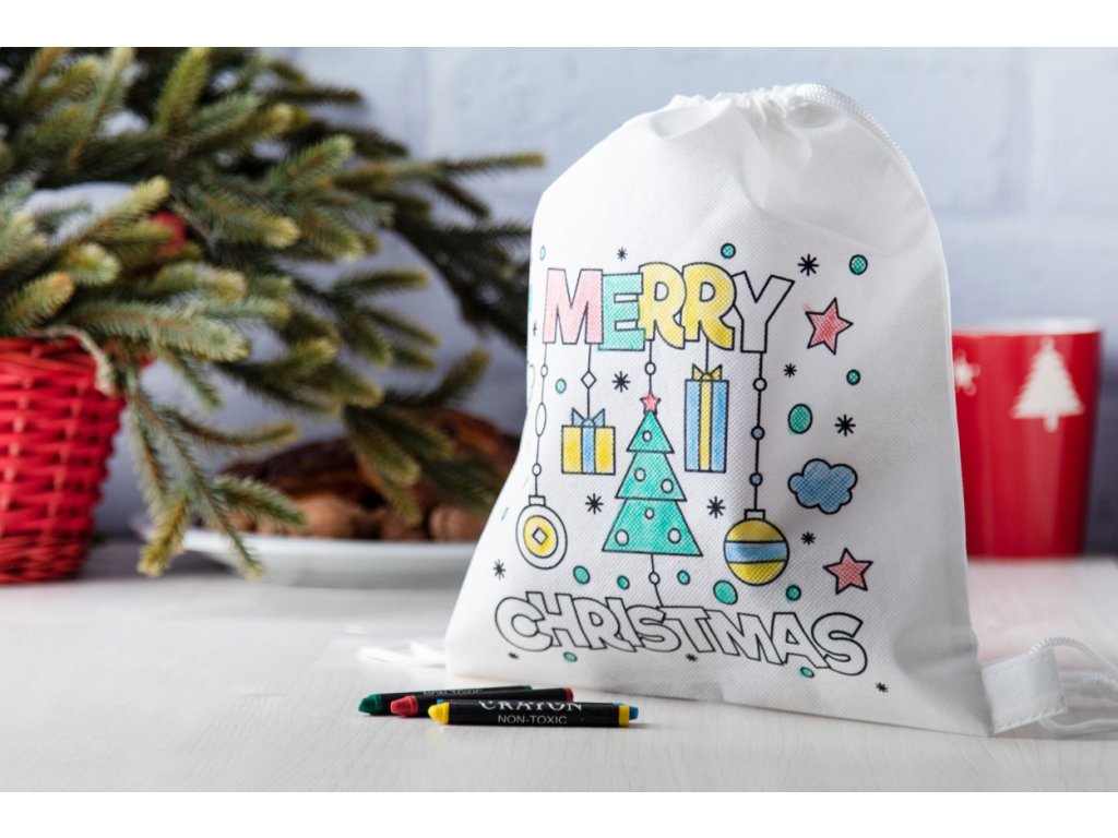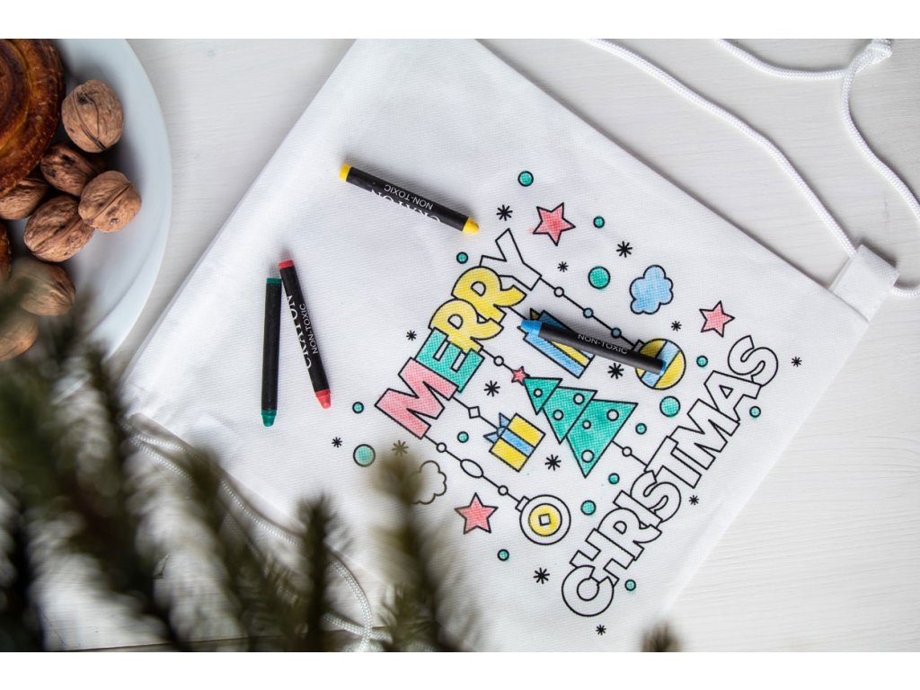 Vyfarbovacia vianočná taška na šnúrku pre deti so 4 pastelkami, netkaná textília 80 g / m².